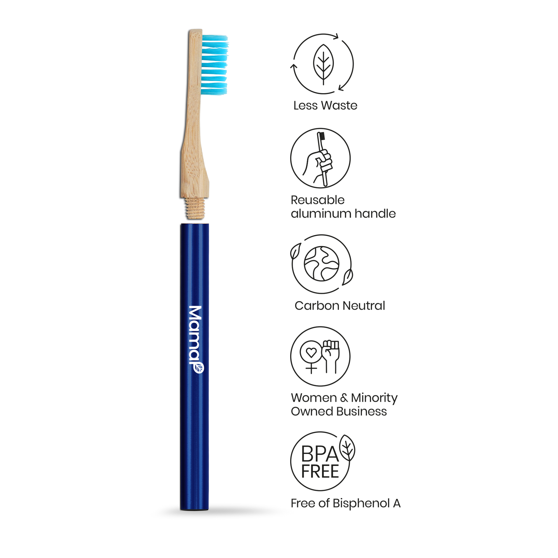 Revolve is a manual reusable toothbrush made from bamboo and aluminum. The nylon bristles help you clean your mouth and fight cavities, while the replaceable head makes it easy to extend its lifecycle. With a great design and practical features like an aluminum brush handle, Revolve is the perfect accessory for any bathroom. This sustainable product/includes 95% less plastic.